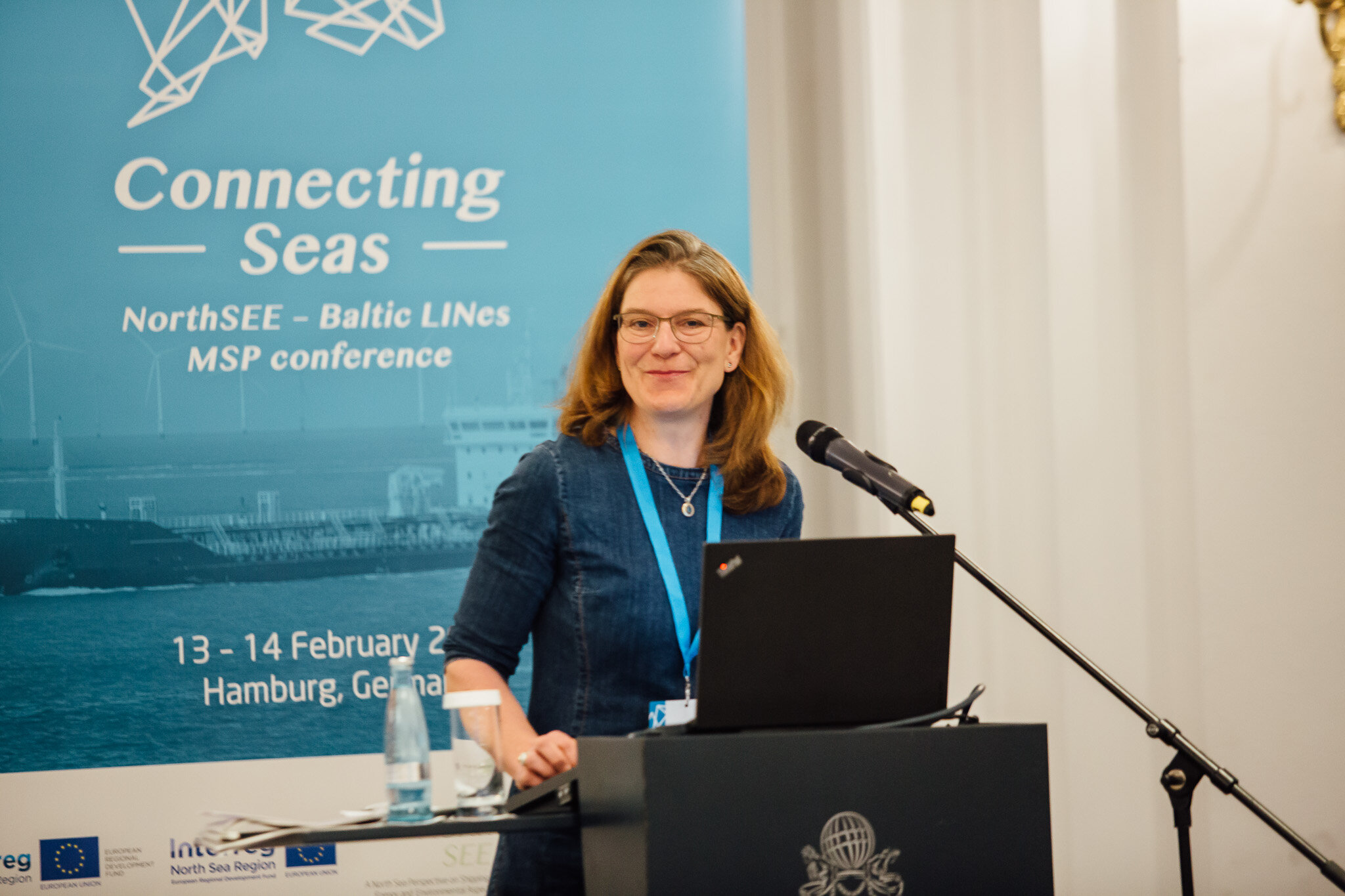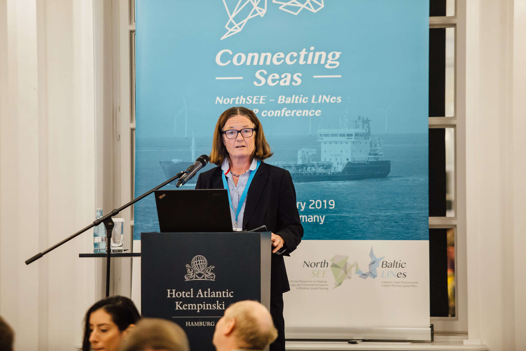 Dr Karin Kamman Klipstein a president of the German Federal Maritime and Hydrographic Agency (BSH) welcomed the conference participants in Hamburg. She pointed out the fact that the North and Baltic Seas have always been connected, nevertheless, the Connecting Seas conference for the first time brrought together the North and Baltic Sea region’s maritime spatial planning communities. Two projects, Baltic LINes and NorthSEE, worked together on important fields in transnational marine management: shipping, energy and environment. Baltic LINes project continued a long and successful history of maritime spatial planning projects in the Baltic Sea Region contrary to the NorthSEE project as this was a first project on maritime spatial planning in the North Sea Region.